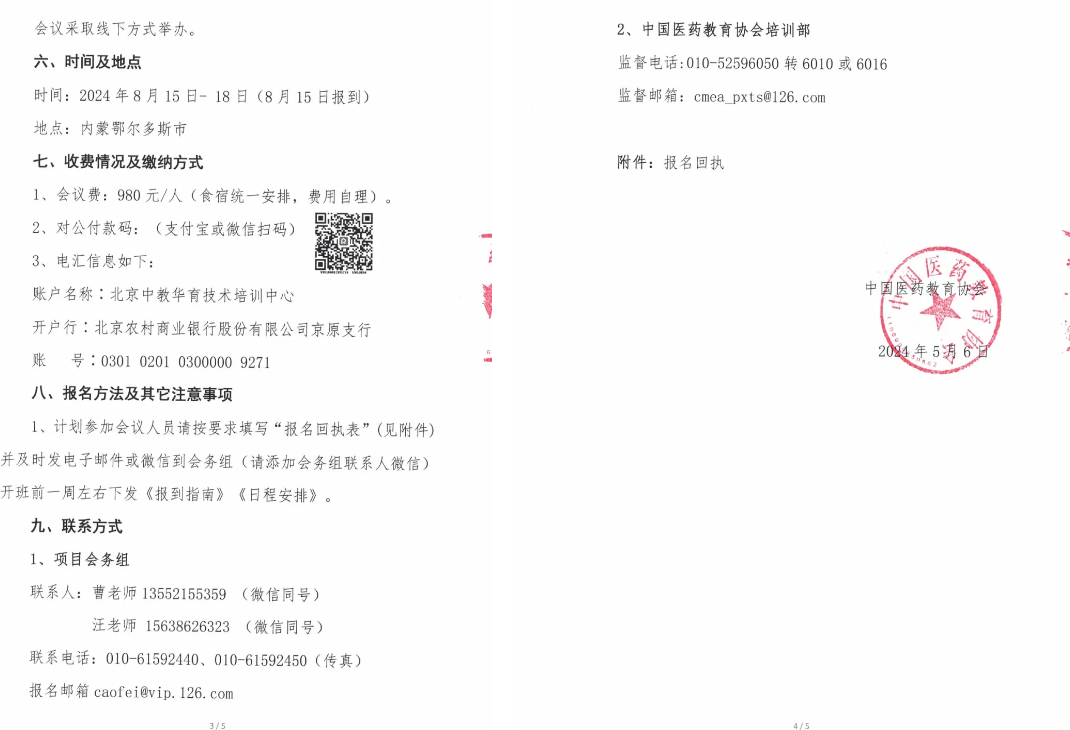 开票事宜:中国医药教育协会委托“北京中教华育技术培训中心”收费与开具发票,开票信息请在报名表中填写。