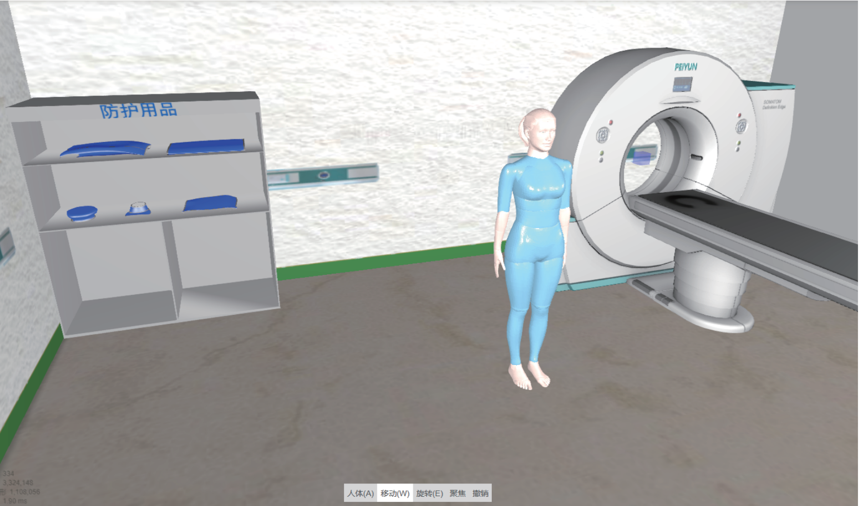 虚拟场景部分完整并细致还原了 CT 检查技术全流程。