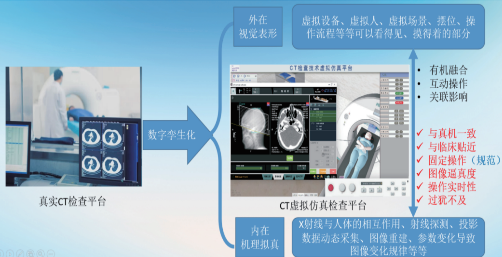 本数字孪生系统旨在实现机理与场景的深度融合,通过与真实设备操作完全一致的数字孪生技术,构建高度仿真的 CT 检查环境。