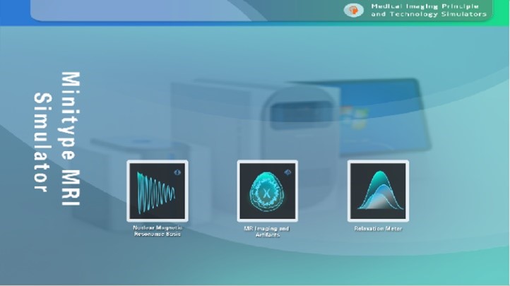 台式核磁共振仿真实验仪包含四个模块:核磁共振基础模块、MR成像与伪影模块、弛豫和扩散测量模块与波谱分析模块。前两个模块采用开放式虚拟核磁扫描技术动态采集油/水试管样品或颅脑模版,可动态显示核磁共振数据采集和图像重建过程,通过参数的任意调整对信号和图像的影响规律以及伪影的表现和成因分析,从而实现根本上掌握核磁成像原理。弛豫和扩散测量模块是模拟仿真核磁共振弛豫分析仪的基本功能,可用于直观快速的学习了解核磁共振弛豫分析技术的原理;可用于弛豫谱相关专业人员的早期自学原理和操作,熟悉参数的设置规则;也可以用于实际测试样品的信号和弛豫谱结果比对参考。波谱分析模块,可以设置常见基团(如甲基,亚甲基等)的氢原子个数、相关的J耦合系数、化学位移等,通过对其FID信号的获取,经过FFT变换后可以得到其相应的波谱分布。本仿真实验仪适用于医学影像技术、生物医学工程、医学影像工程专业对于核磁共振成像原理的实操实验教学。
